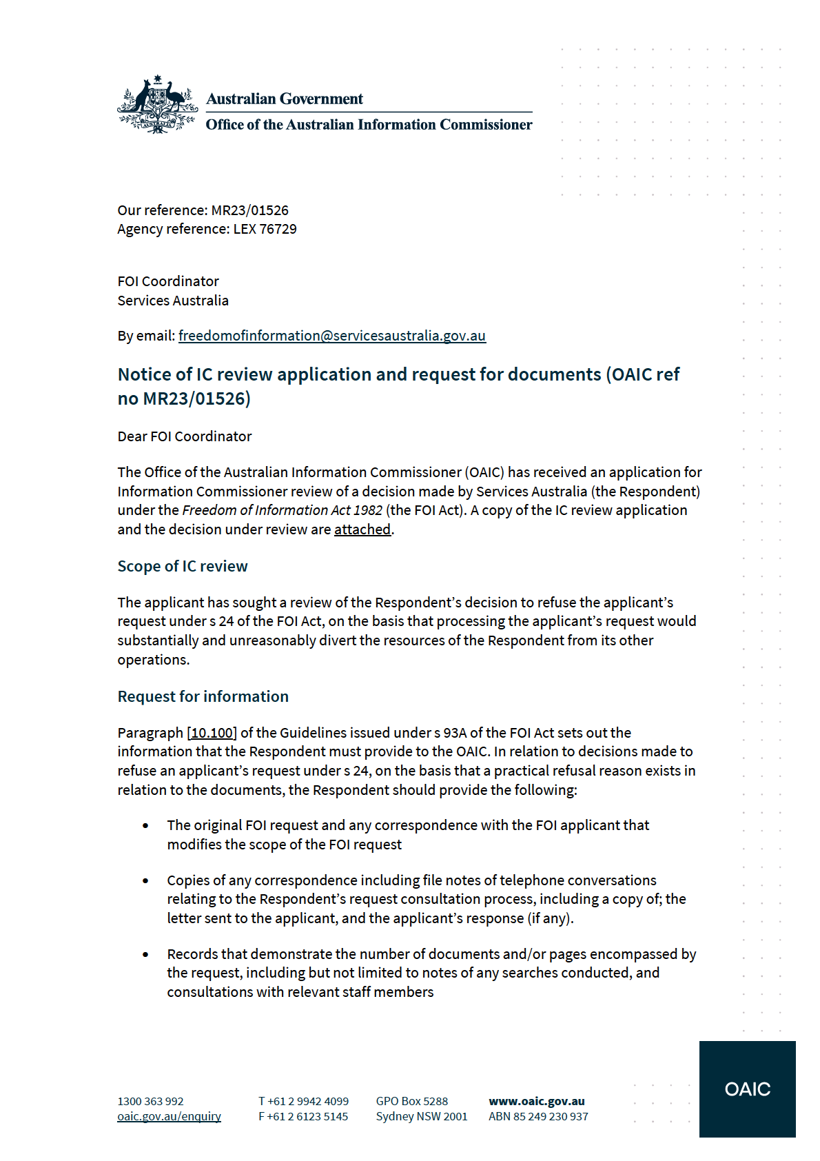 MR23/01526 Notice of IC review application and request for documents [SEC=OFFICIAL]