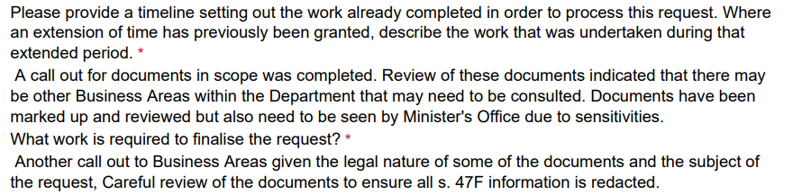 The Agency’s reasons for requesting an extension of time, as included in the extension of