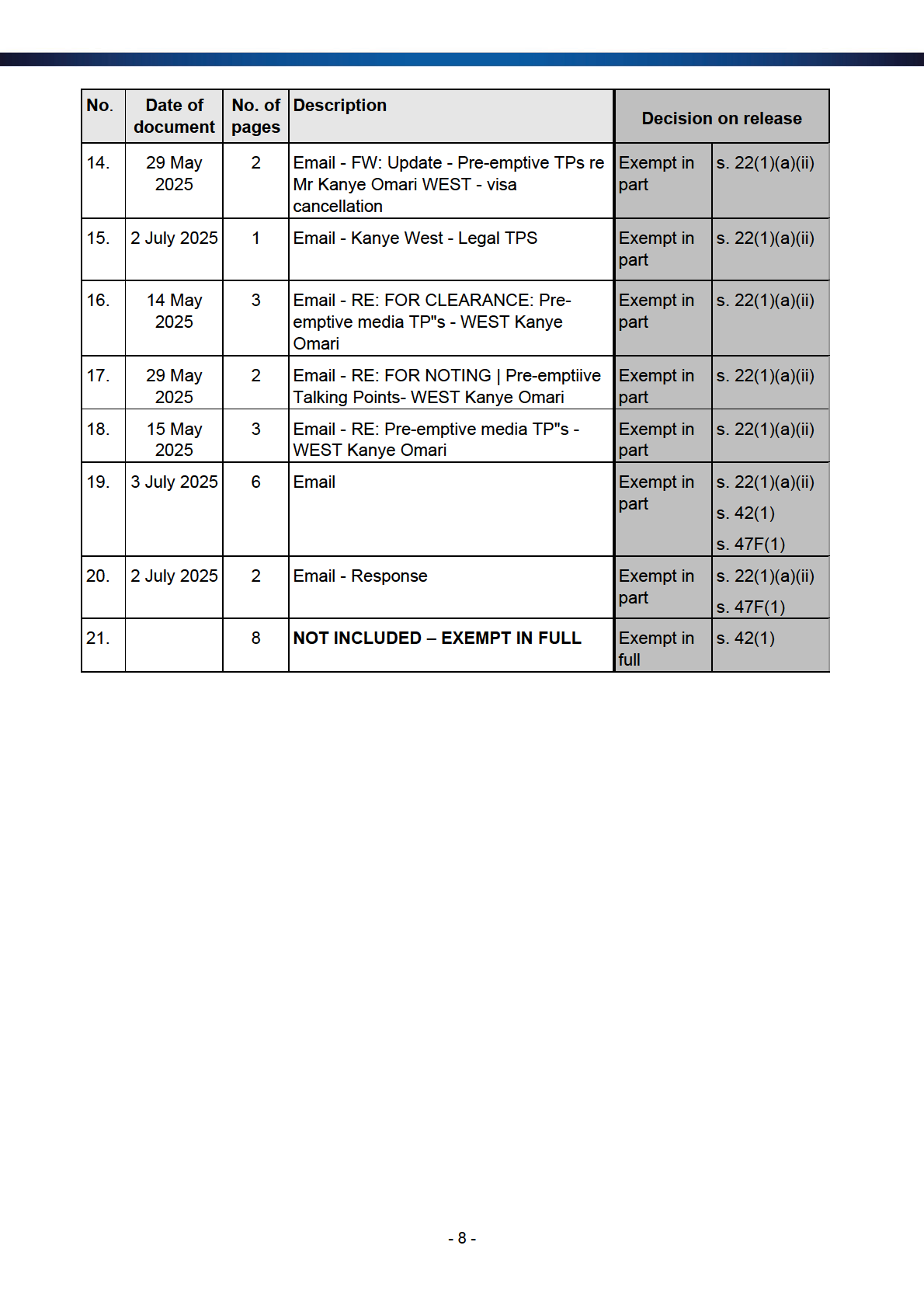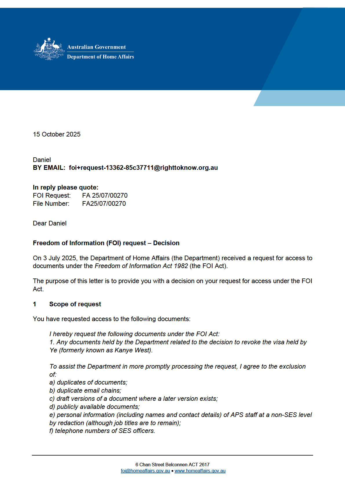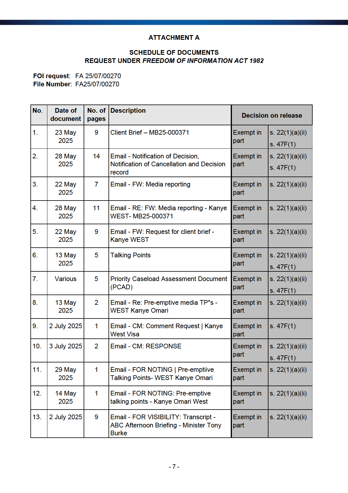 On 4 July 2025, the Department advised you that its policy is to exclude the personal details of