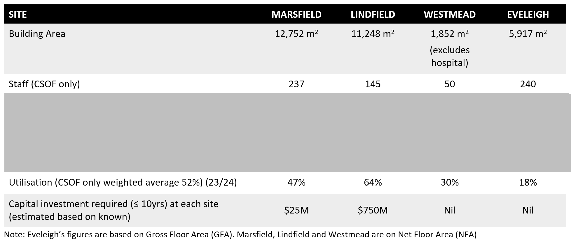 Marsfield (noting Eveleigh’s lease expiry in June 2026, which wil not be renewed)