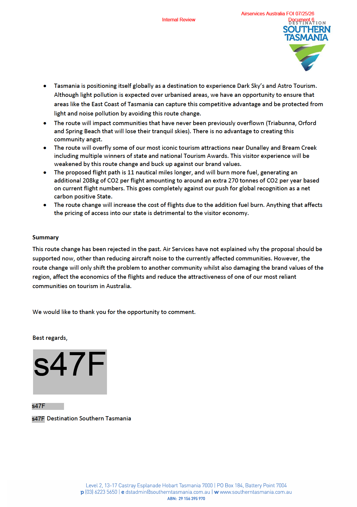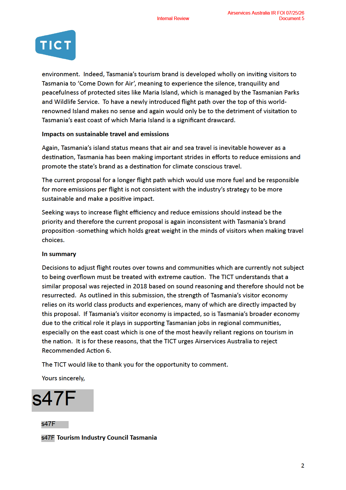 TICT Submission to Airservices Australia’s Opposing ‘Recommended action 6: Move