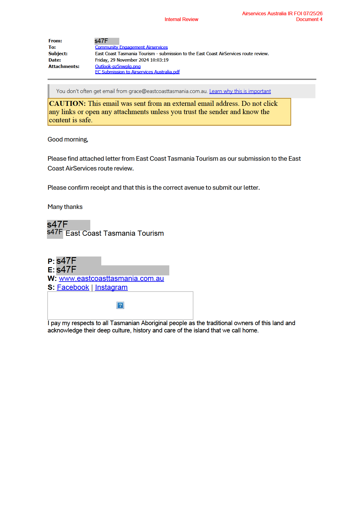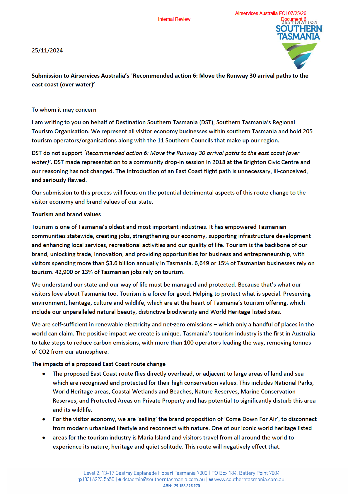 I am writing to you as the peak industry body for tourism in Tasmania, the Tourism Industry