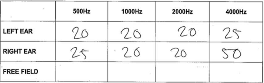 the table included in the hearing form has only 2 recorded frequencies, these become