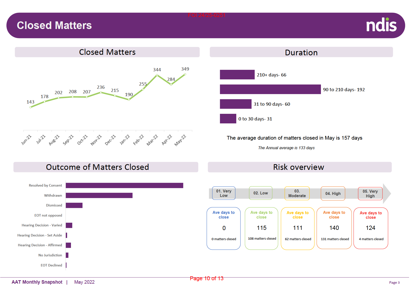 1. A snapshot of the NDIA’s caseload in the AAT current at 27 May 2022 is at Attachment A. We would