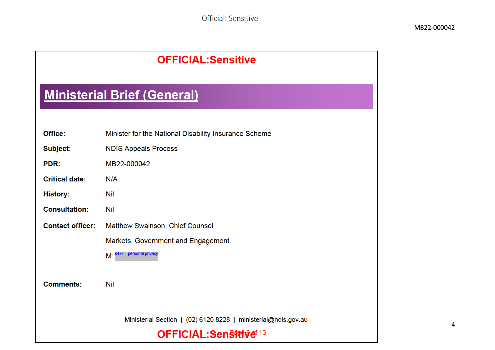Subject: Urgent briefing required - NDIS Appeals process discussion [SEC=OFFICIAL]