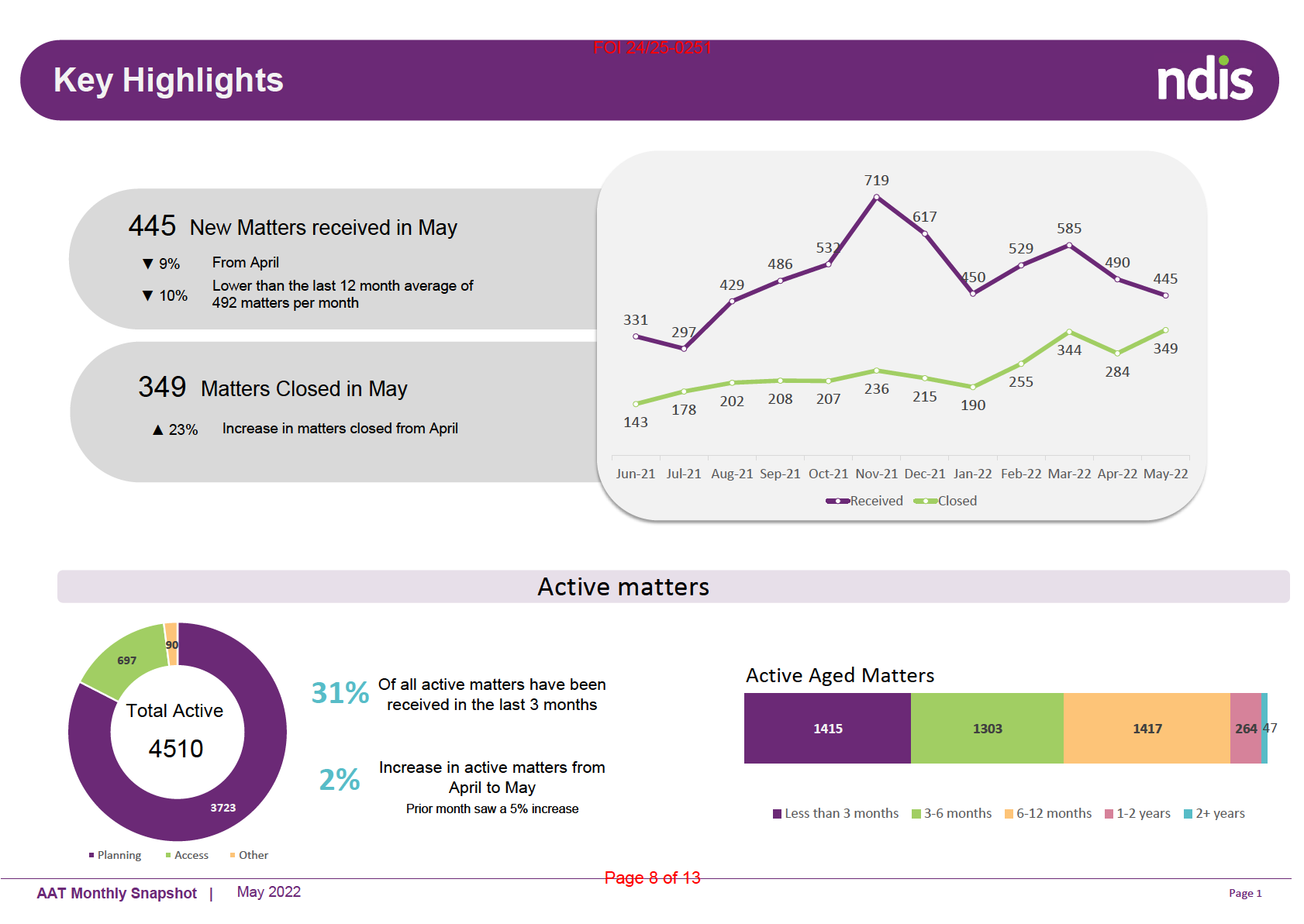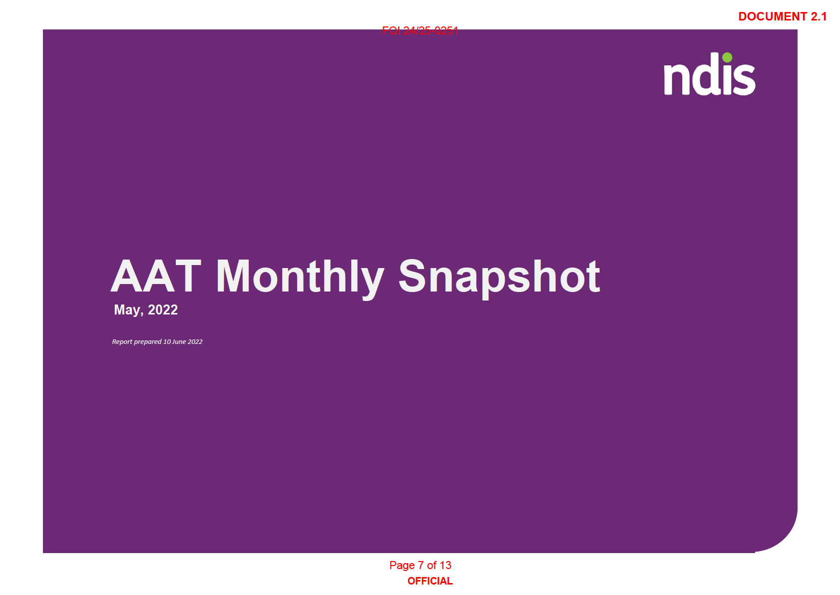 Media Considerations: There has been recent media coverage regarding the NDIA’s AAT caseload.
