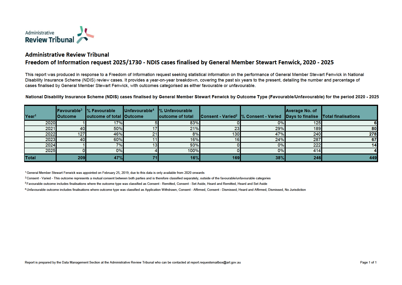 This is an HTML version of an attachment to the Freedom of Information request 'Administrative Review Tribunal (ART) - Member Stewart Fenwick'.