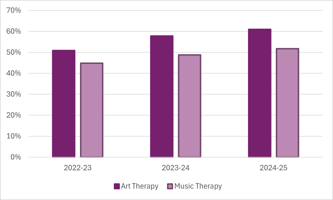(79% of the largest art therapy providers and 85% of the largest music therapy providers