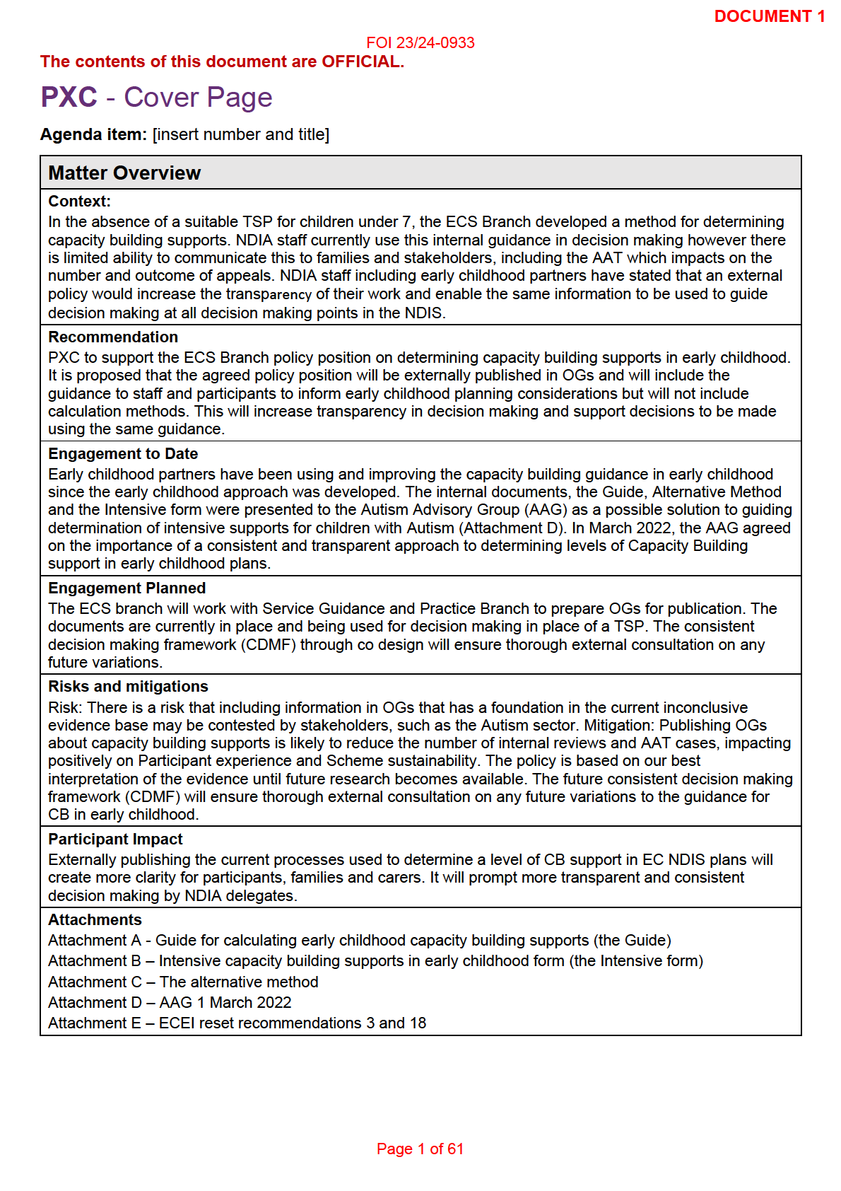 the NDIA has made a commitment to be consistent and transparent about decision making