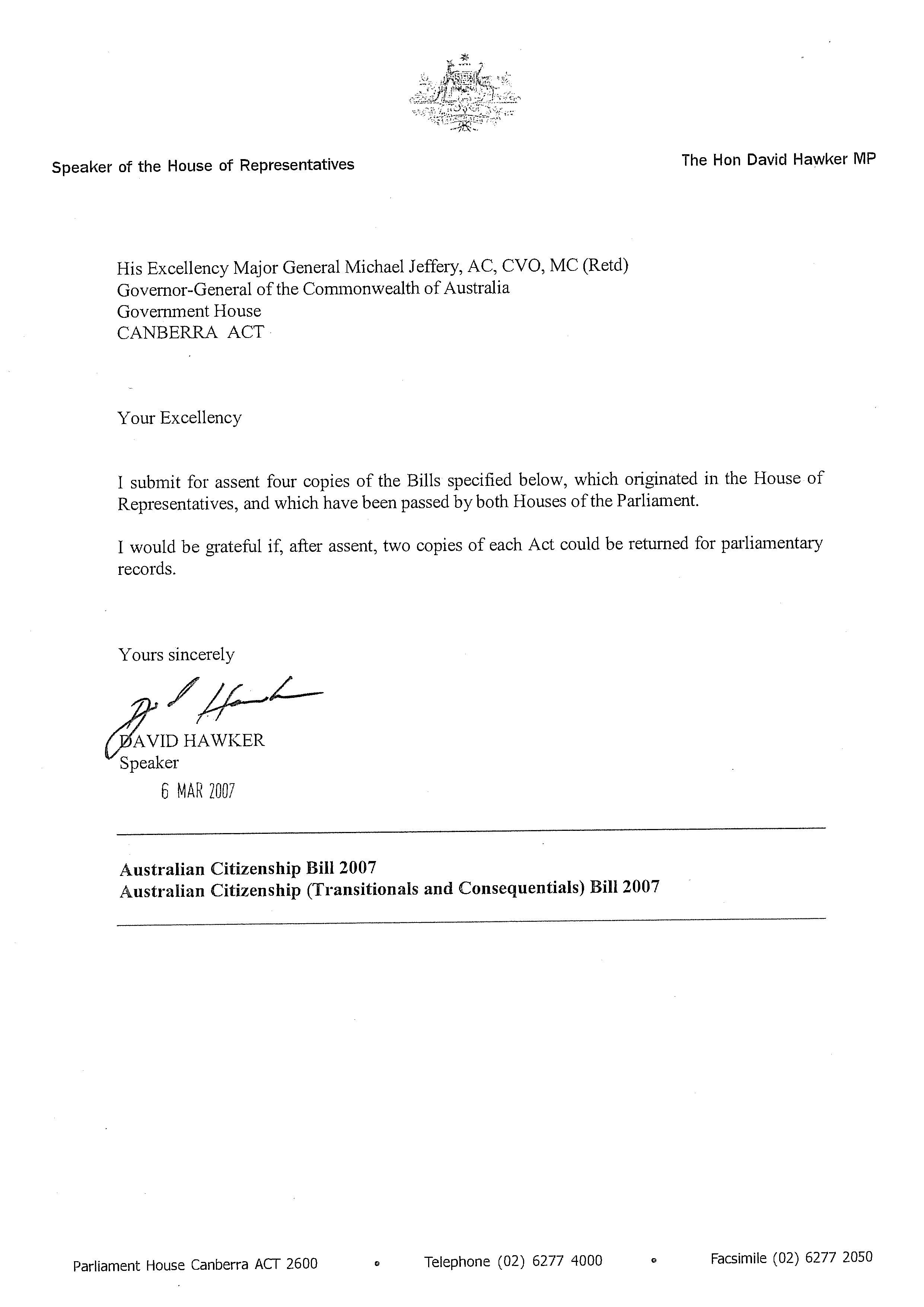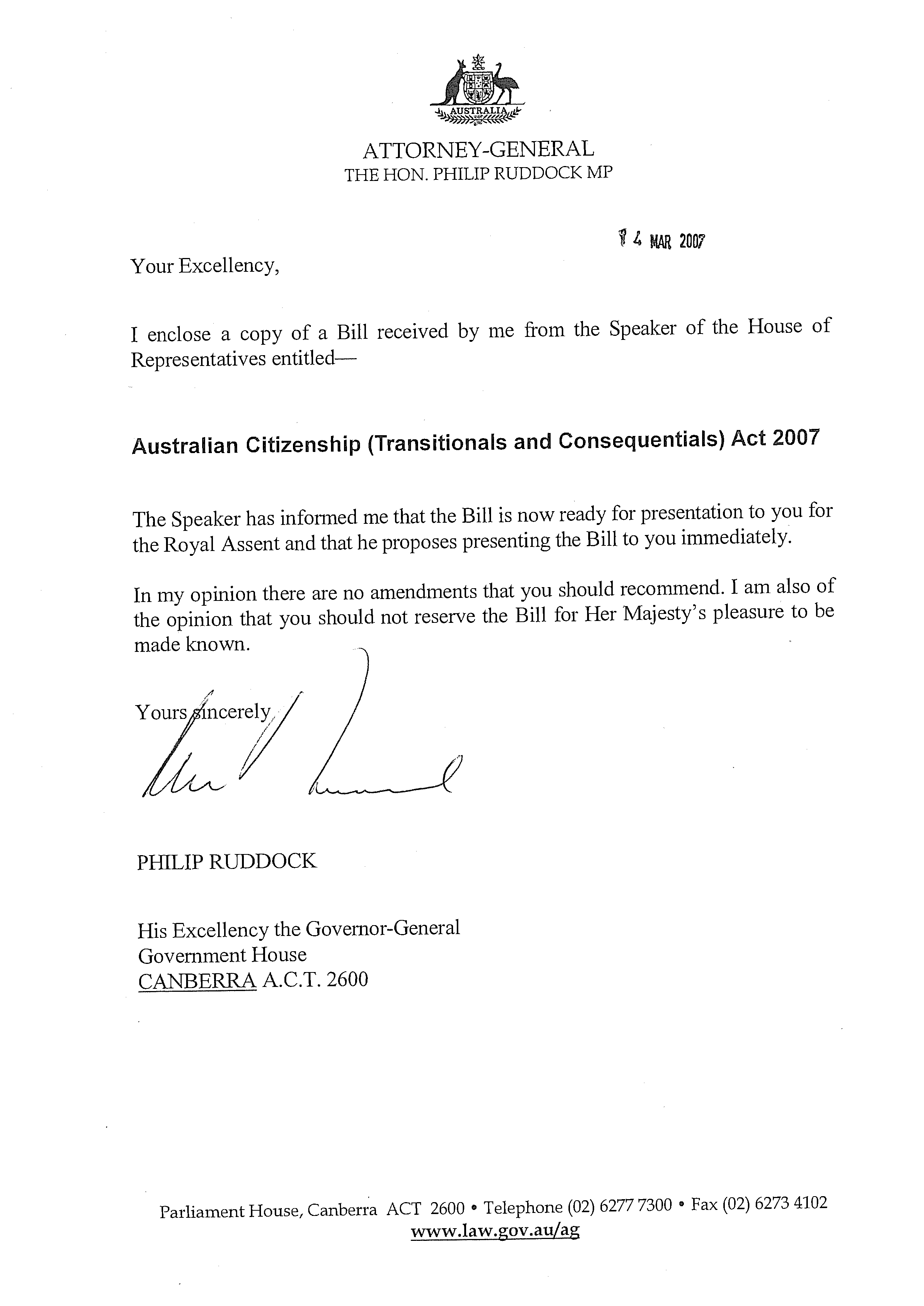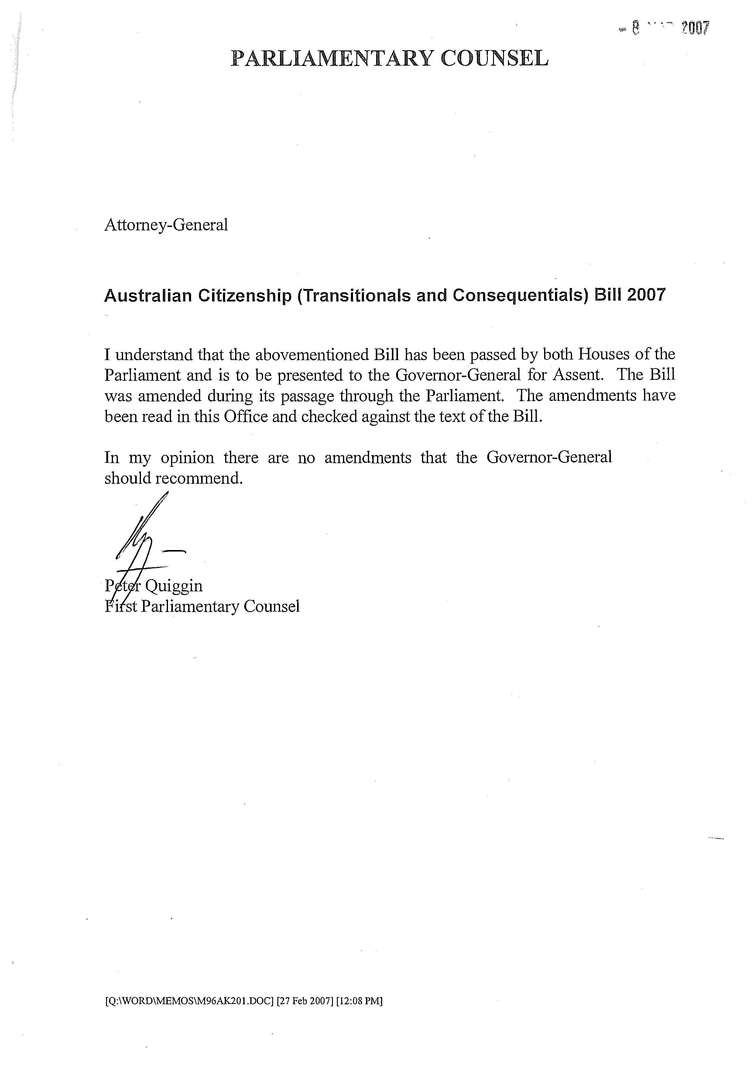 This is an HTML version of an attachment to the Freedom of Information request 'Act No. 21 of 2007 - assented/signed copy and documents submitted for Royal Assent'.