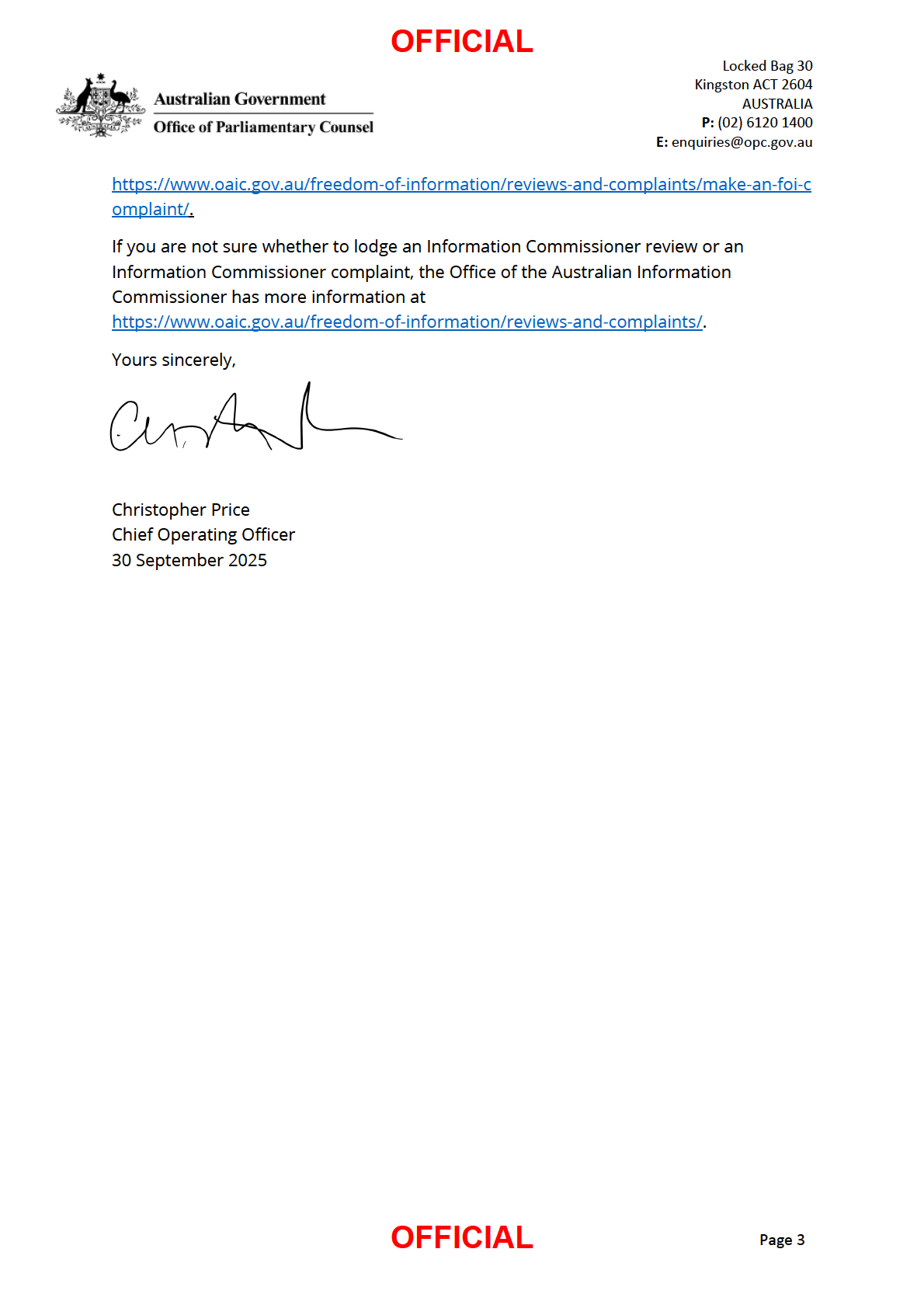 Bag 30, Kingston ACT 2604, or by email xxx@xxx.xxx.xx for an internal review of my
