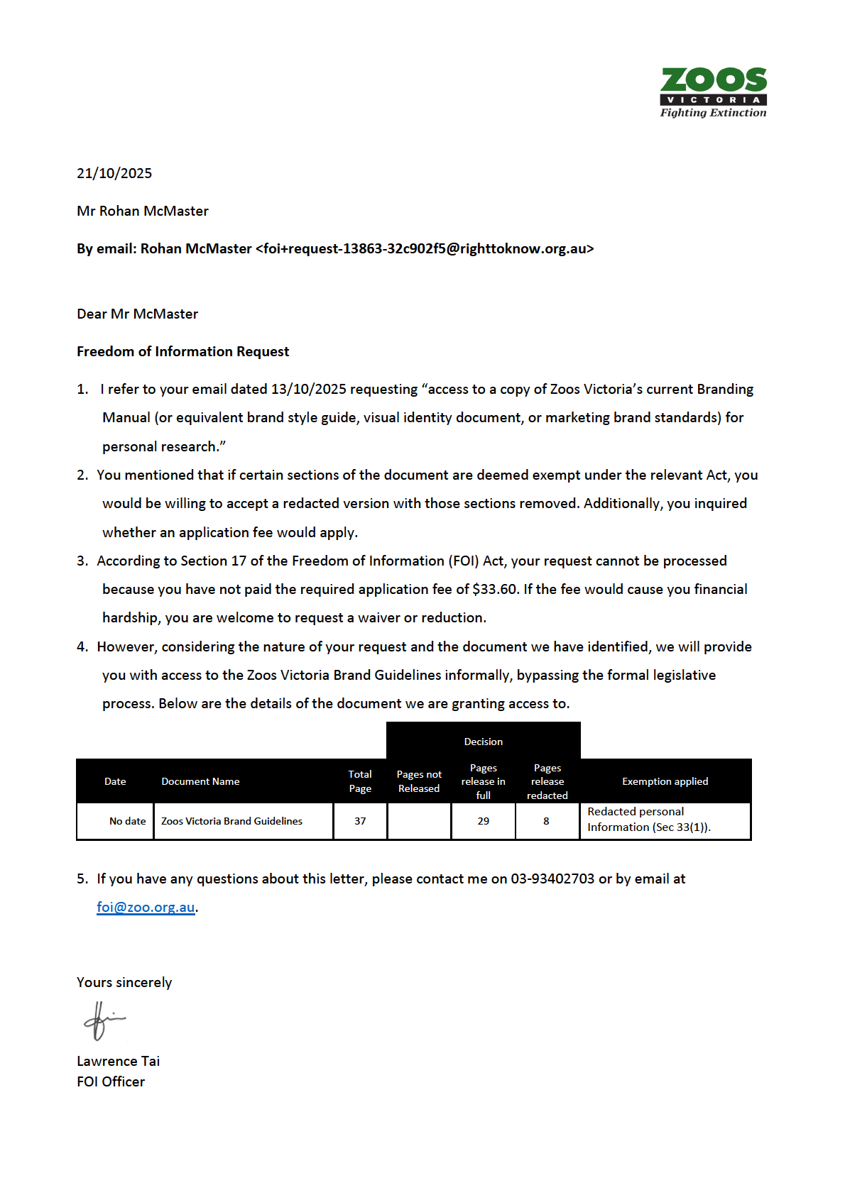 This is an HTML version of an attachment to the Freedom of Information request 'Zoos Victoria Branding Manual'.