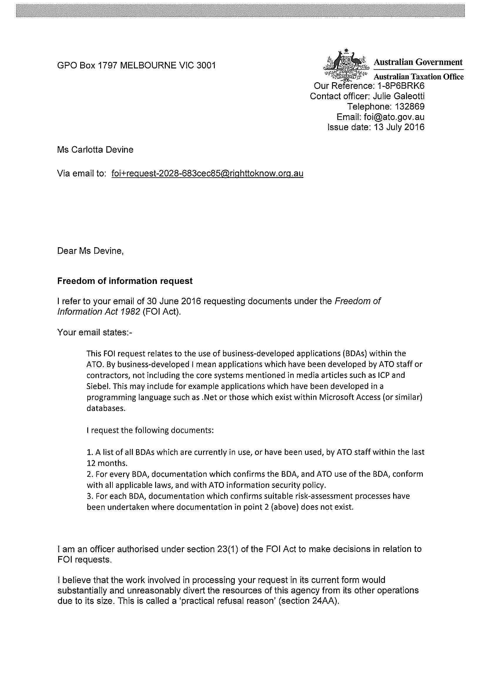 This is an HTML version of an attachment to the Freedom of Information request 'ATO Business-Developed Applications'.