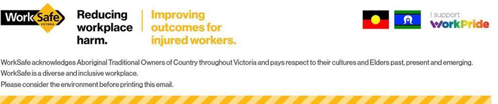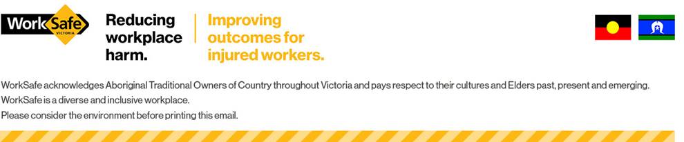 Please note that we work flexibly at WorkSafe Victoria. I am sending this